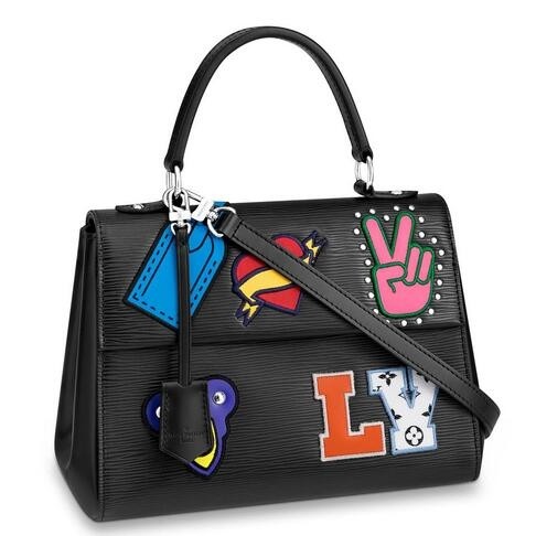 - Epi grained cowhide leather, smooth cowhide leather, and Monogram canvas patches and studs- Smooth cowhide-leather trim- Microfiber lining- Silver-color hardware- Top handle- Front flap with a magnetic closure- Key holder- Removable strap- Double-smartphone pocket inside- Zipped pocket inside- 4 bottom studsSize: 11 x 8 x 4 inchesComes with Louis Vuitton serial number, dust bag and authenticity card.