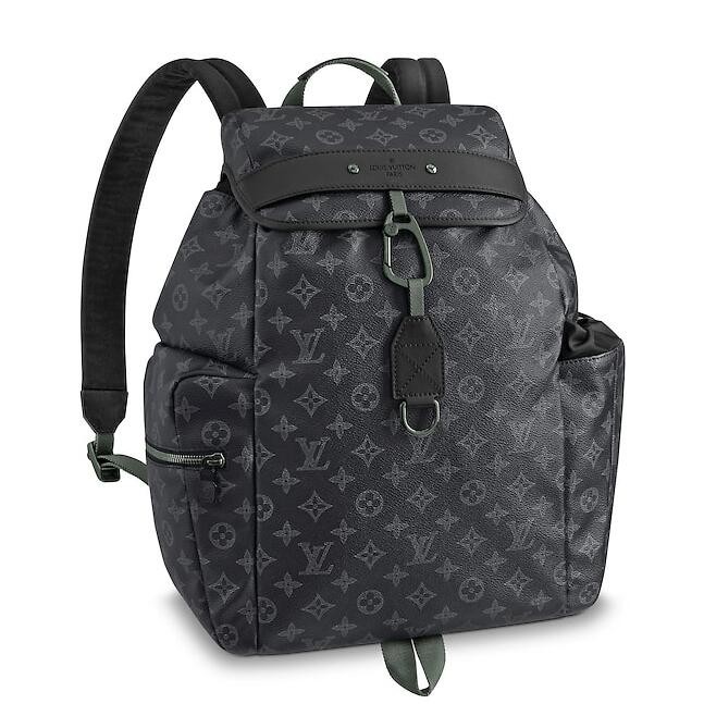 - Monogram Eclipse coated canvas- Textile lining- Textile and cowhide leather trim- Green and black hardware- Drawstring closure system and flap closure with a hook- 2 adjustable leather back straps- 2 outside pockets (1 zipped, 1 open)- Inside zipped pocket- Inside double pocketSize: 21.2 x 12.6 x 5.1 inchesComes with Louis Vuitton serial number, dust bag and authenticity card.