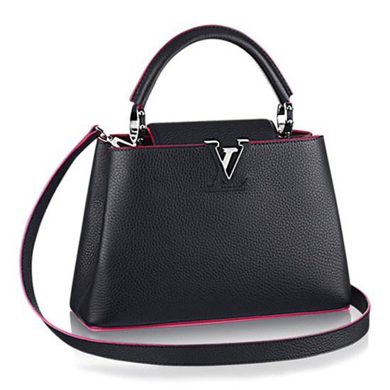 Description:The fashionable mini size of Capucines PM lends anintense pop of contrasting colors to wardrobe styles from classic to daring.Finished with shiny color accents, the Capucines PM comes with a removableshoulder strap for casual shoulder or cross-body wear.Size: 12.2 x 7.9 x 4.3 inches / 31cm x 20cmx 11cm (Length x Height x Width) DetailedFeatures:- Full-grain Taurillon leather- Handle for arm or hand carry, removable strapfor shoulder or cross-body carry.- Snap hook closure- 2 large compartments- 1 flat pocket, 1 zipped pocket- Protective bottom studsCome withlouis vuitton original paper shopping bag, yellow dust bag,authenticity card, tag.
