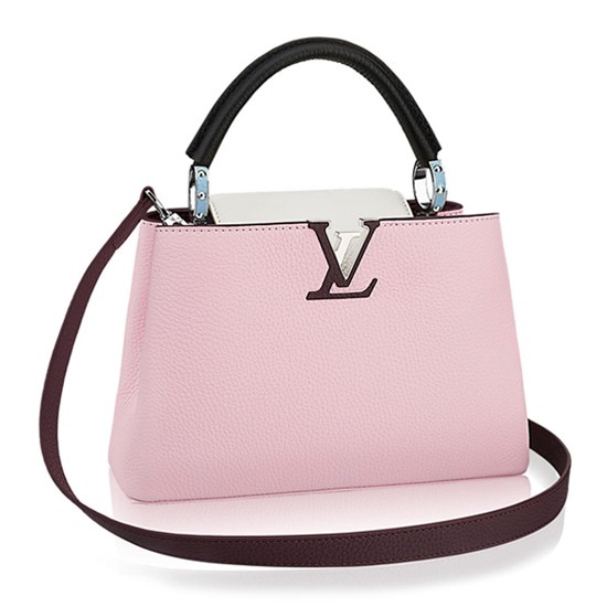 The fashionable mini size of Capucines BB lends anintense pop of contrasting colors to wardrobe styles from classic to daring.Finished with shiny silver color accents, the Capucines BB comes with aremovable long shoulder strap for casual shoulder or cross-body wear.