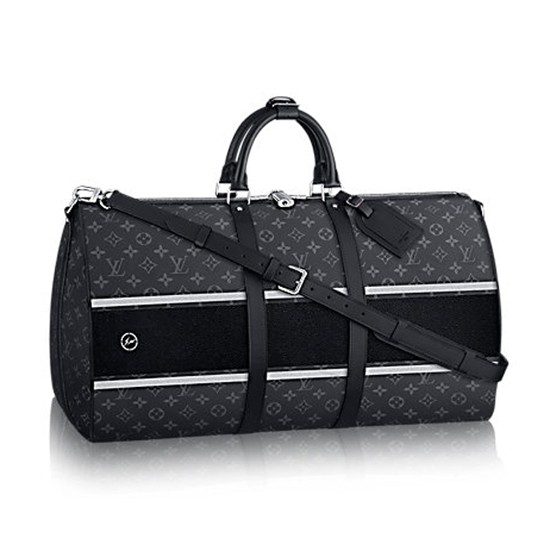 Designed in collaboration with the Japanese designer Hiroshi Fujiwara, the KEEPALL 45 BANDOULIERE combines both House heritage - with the Monogram pattern - and modernity with fine details - two reflective bands and a black one, lozine edging, pocket stitching and colored Rainbow hardware - for a result both sporty and fashion. Cabin size but with a generous volume, it is the perfect companion for two days trips.