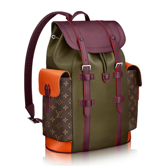 Artistic Director Kim Jones took a cue from uptown New York City style for this new Christopher Backpack. Presented in a playful color-blocked patchwork of Monogram canvas and rich shades of Epi leather, with multiple pockets for robust functionality.