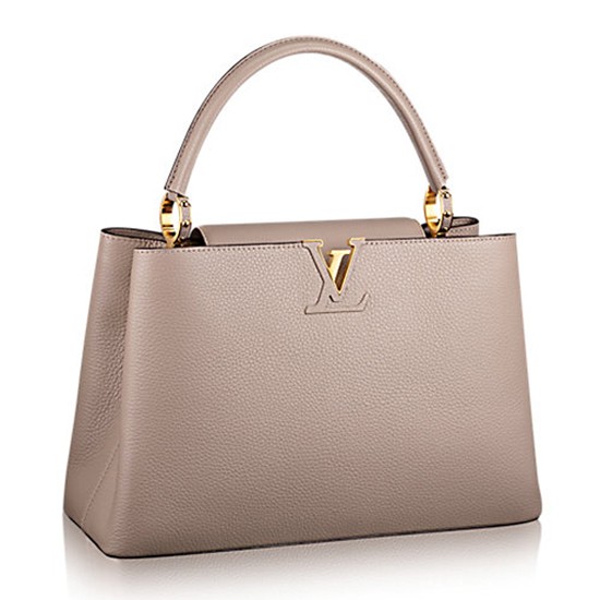 Description:Taking its name from the Rue des Capucines inParis, where Louis Vuitton opened his first store in 1854, the timelesslyelegant Capucines bag is a testament to fine leather craftsmanship. Infull-grain Taurillon leather, it combines refined details, including a semi-rigidhandle secured by jewel-like rings, with a spacious and functional shapeoffering two inside compartments. Its distinctive flap can be worn two ways:outside to reveal the outline of a Monogram flower, or inside to show the LVinitials.Size: 14.2 x 9.1 x 5.5 inches / 36cm x 23cmx 14cm (Length x Height x Width) DetailedFeatures:- Shoulder, elbow or hand carry options- Taurillon Caviar leather trim- Calfskin lining- 2 large interior compartments with 1 flat pocketand 1 zipped pocketCome withlouis vuitton original paper shopping bag, yellow dust bag,authenticity card, tag.