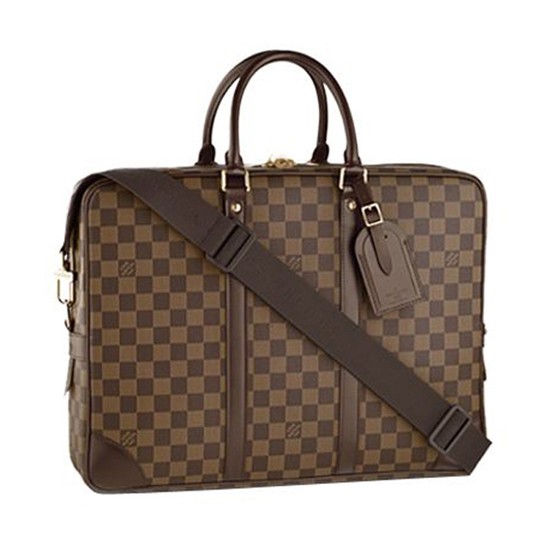 The Porte-Documents Voyage GM in Damier Ebene canvas features a spacious, A4-sized interior and a comfortable shoulder strap. Indisputably the most stylish way of carrying a 15" laptop.