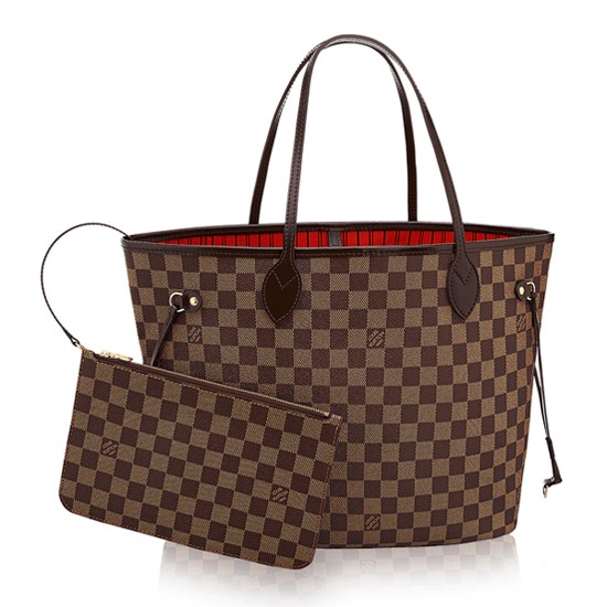 Legendary Neverfull: always exactly what you need it to be. Capacious but not bulky, structured yet supple, at home on the town or in the country. Cinch the side laces, and voila! it's a sleek city bag. Loosen them and you have a chic, practical tote. The slim leather handles fit over the shoulder or on the arm. Shown here in Damier Ebene canvas.
