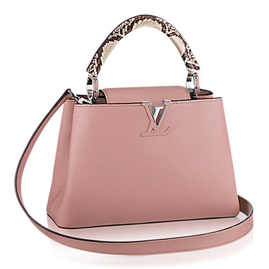 The fashionable mini size of Capucines PM lends anintense pop of contrasting colors to wardrobe styles from classic to daring.Finished with shiny color accents, the Capucines PM comes with a removableshoulder strap for casual shoulder or cross-body wear.