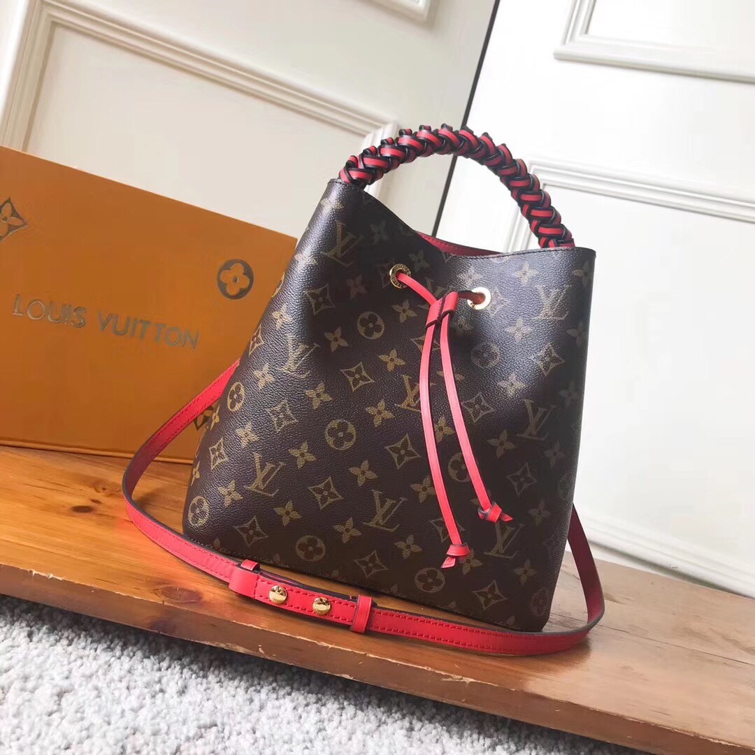 - Monogram coated canvas- Smooth cowhide leather trim- Microfiber lining- Gold-color hardware- Braided top handle- Inside zipped pocket- Adjustable long strap with press snaps- Closing laceSize: 26 x 27 x 22 cmComes with Louis Vuitton serial number, dust bag and authenticity card.