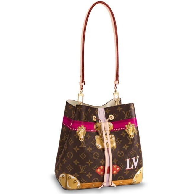 - Printed Monogram coated canvas- Calf leather trim- Microfiber lining- Gold colored metallic pieces- 1 interior zipped central compartment- 1 adjustable long strap with press button- 1 drawstring closure Size: 10.2 x 8.7 x 10.8 inchesComes with Louis Vuitton serial number, dust bag and authenticity card.