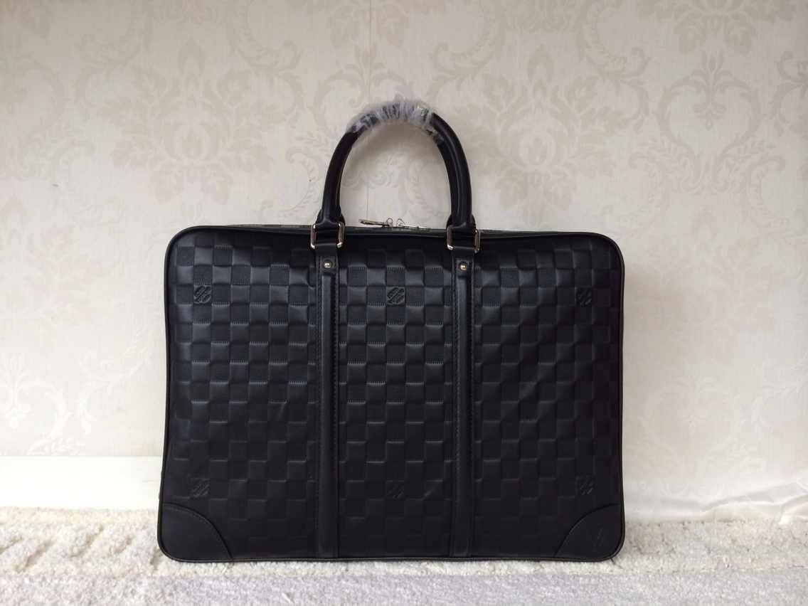 - Plain leather name tag- Satin-finished titanium hardware- Rounded handles for comfortable hand carry- Zipped closure with padlock- Interior zipped pocket and 4 flat pockets- Pen loops and D-ring for keys and accessoriesSize: 16.1 x 12.2 x 2.8 inchesComes with Louis Vuitton serial number, dust bag and authenticity card.